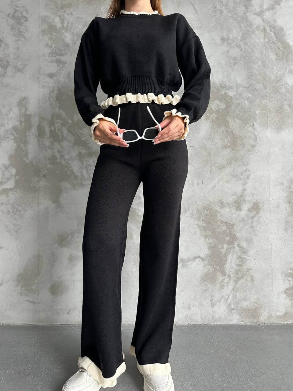 Bucură-te de un look rafinat și călduros cu setul tricotat de iarnă, creat pentru a-ți oferi confort și stil în același timp. Setul este format din o bluză elegantă și pantaloni largi, confecționate dintr-un material tricotat moale, care îți îmbrățișează corpul cu delicatețe – alegerea perfectă pentru zilele reci.
