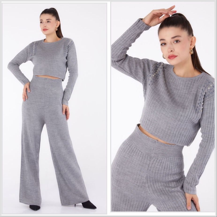 Bucură-te de un look rafinat și călduros cu setul tricotat de iarnă, creat pentru a-ți oferi confort și stil în același timp. Setul este format din o bluză elegantă și pantaloni largi, confecționate dintr-un material tricotat moale, care îți îmbrățișează corpul cu delicatețe – alegerea perfectă pentru zilele reci.