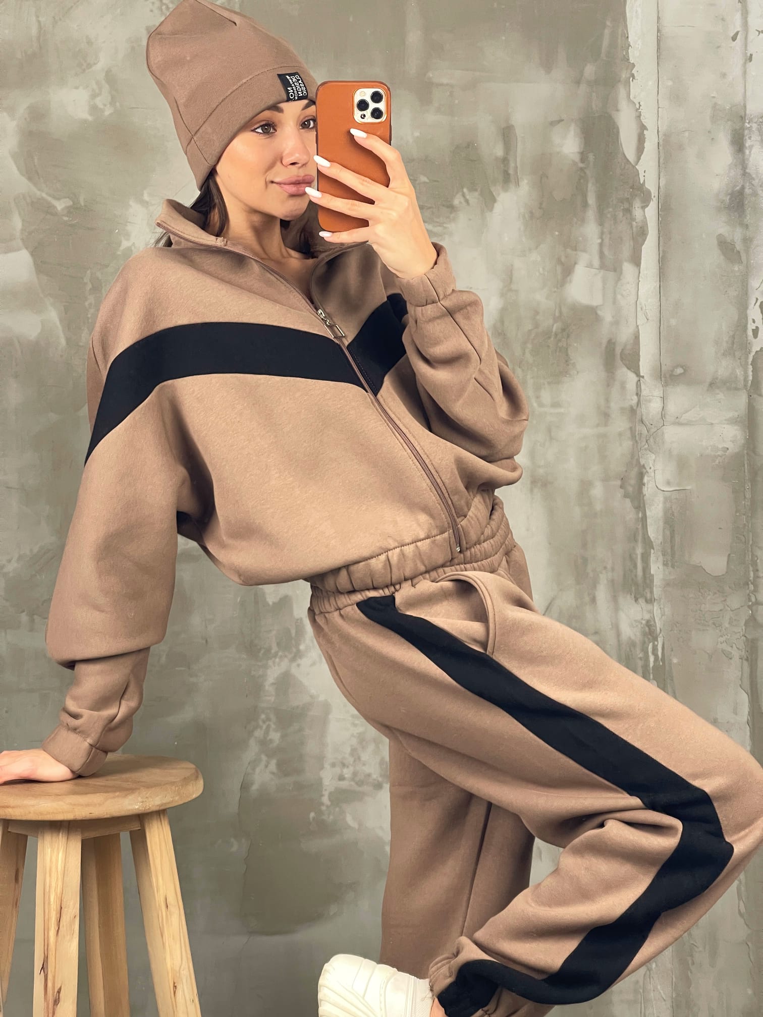 • Design: De obicei, constă dintr-un tricou sau hanorac cu fermoar/capison, asociat cu pantaloni de trening sau colanți.