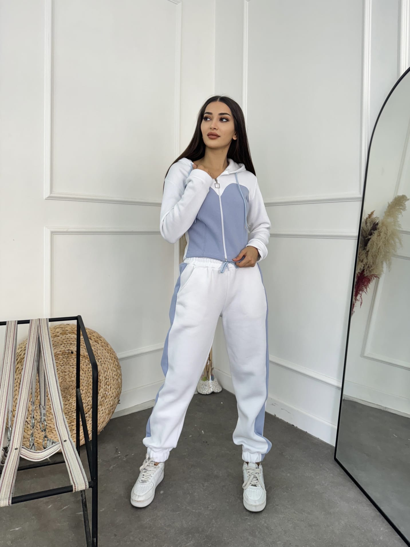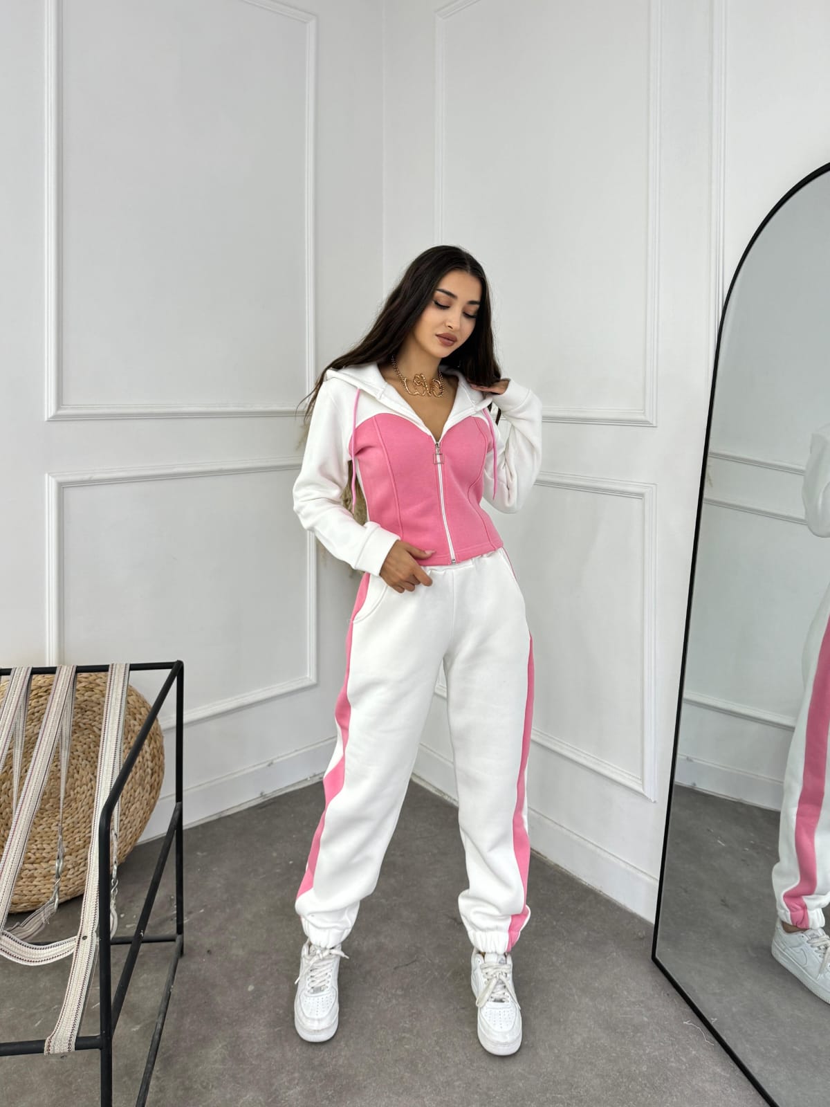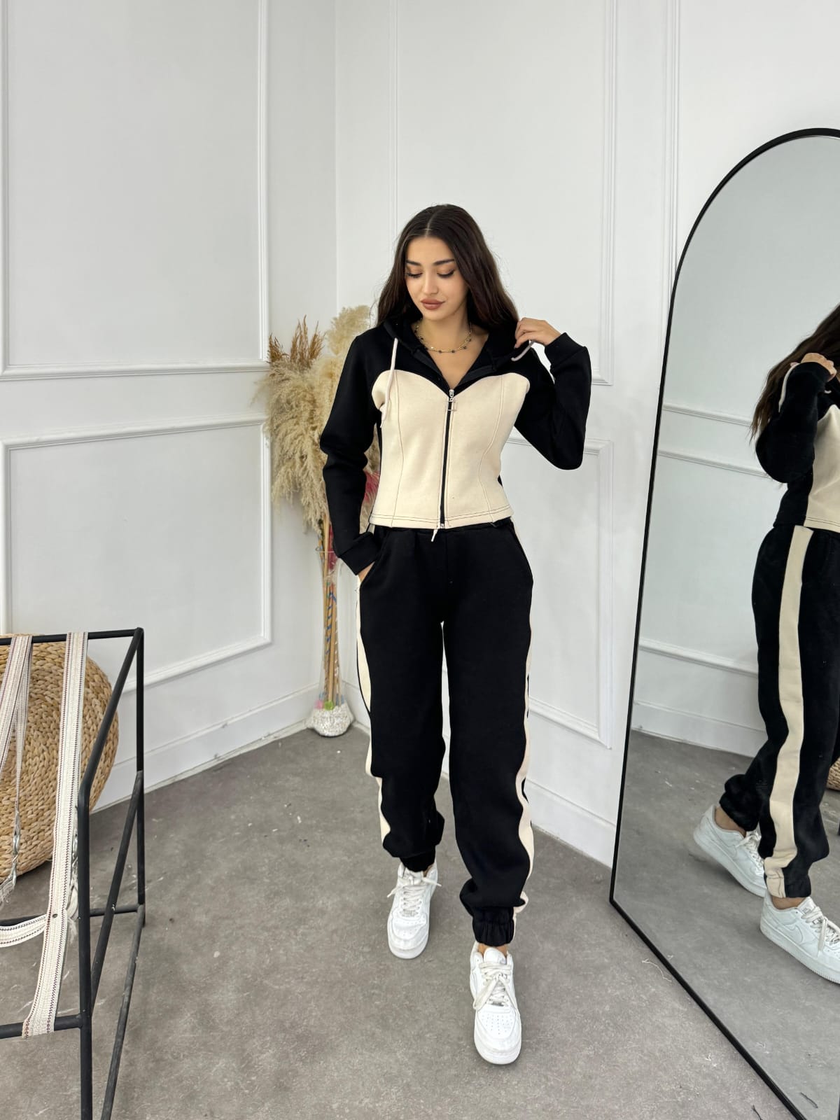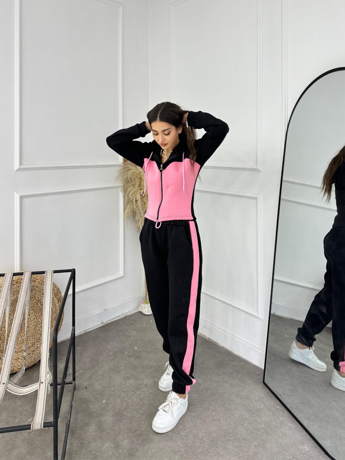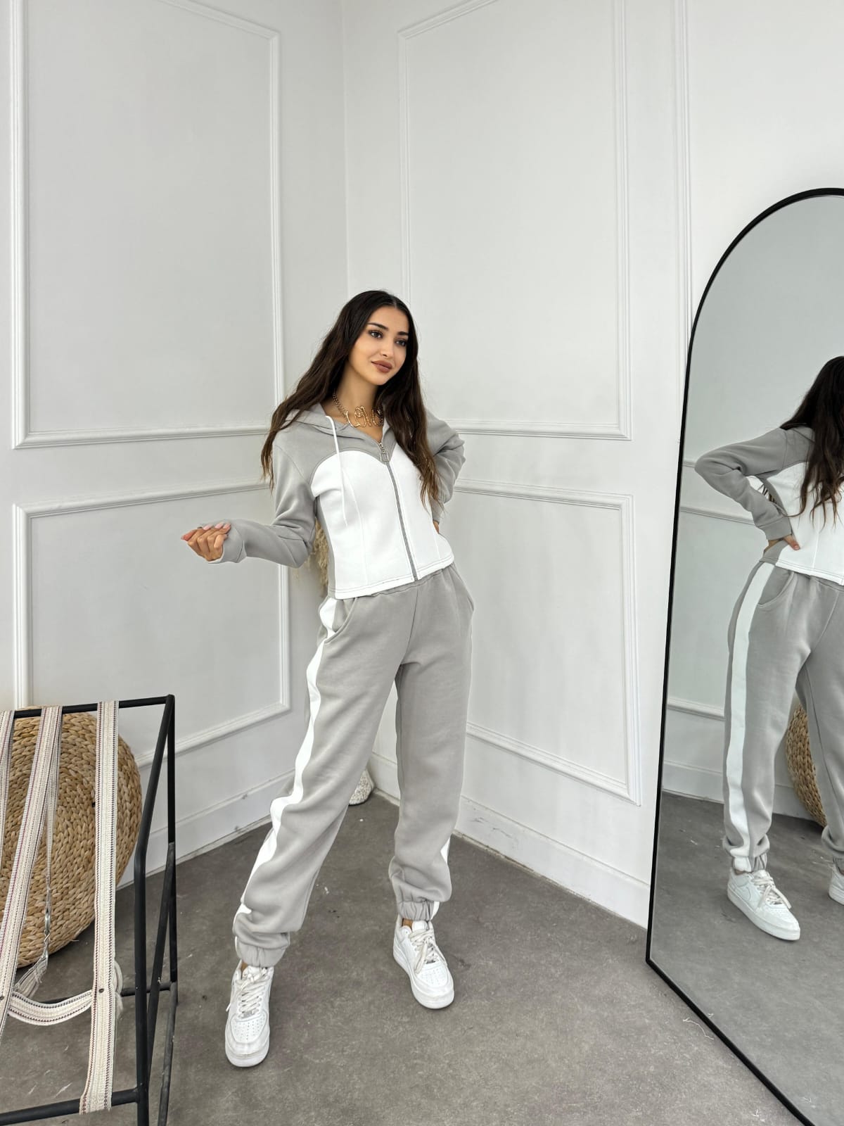 • Design: De obicei, constă dintr-un tricou sau hanorac cu fermoar/capison, asociat cu pantaloni de trening sau colanți.
